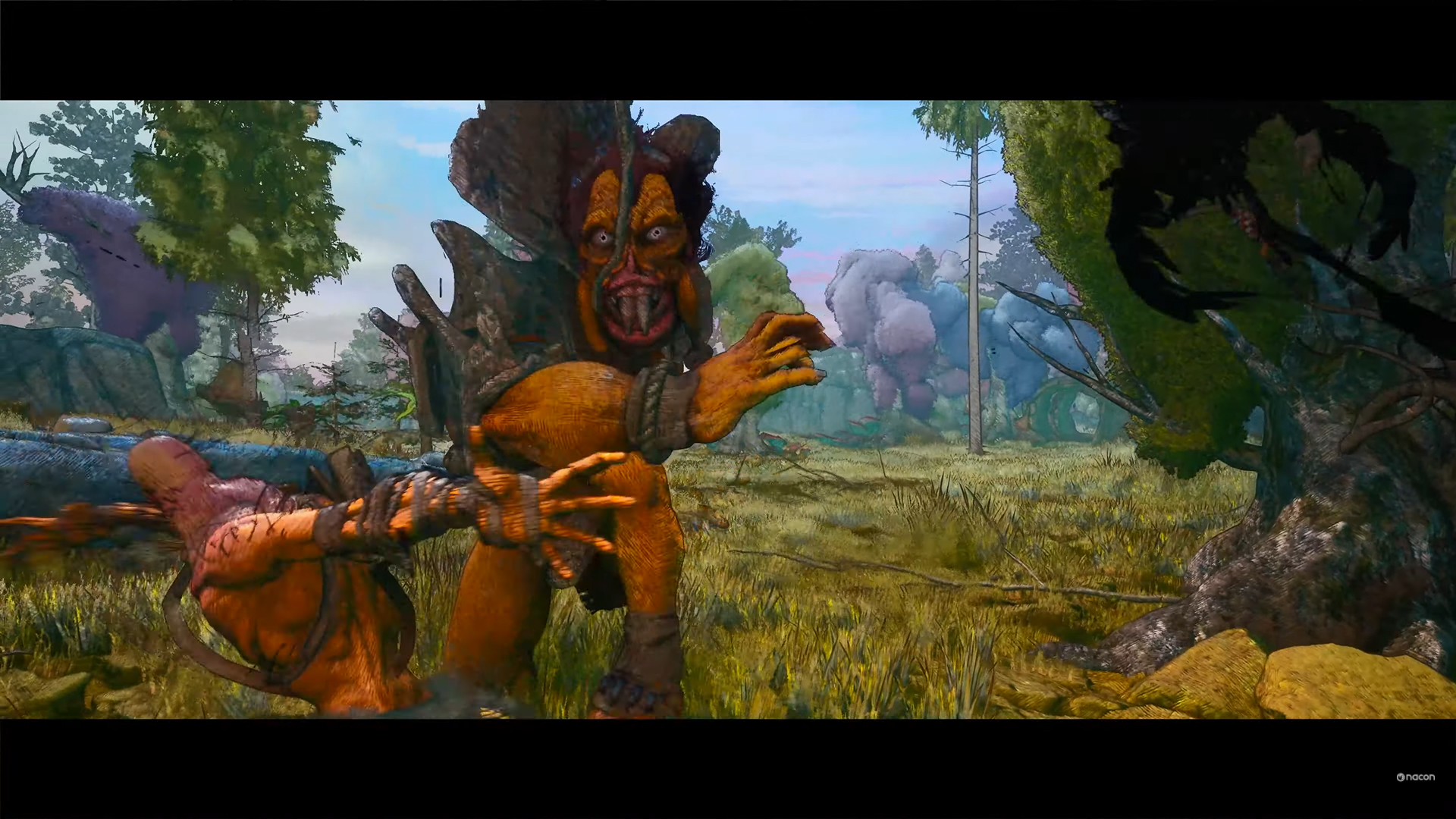 Play a dice game before battles to determine the stipulations of the match. Stips features are having your opponent chained to the ground or fight the match in a cloud of fog. Pretty cool idea, like the old tactics games where the Judge would not allow certain moves during the battle. There’s also an open world and puzzles to solve while traveling. You can switch martial arts styles on the fly so you can take on any situation. Plus have I mentioned the art style is pretty sick. Look at these monsters. Like, Where the Wild Things Are vibes going on here.