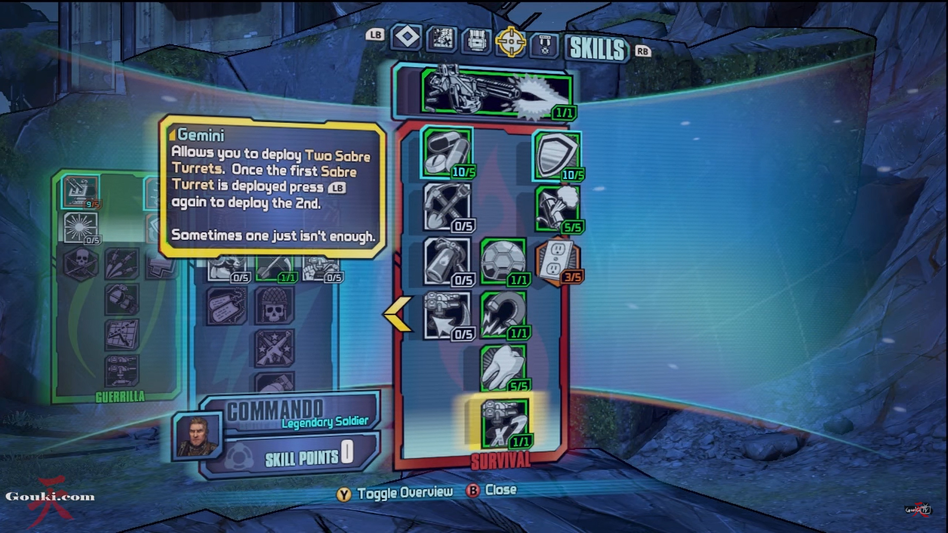 This is a good damage build with decent survivability. It allows the turret to slag, which is useful and will be even better in the upcoming third play through. The turret also has rocket pods and a shield. As far as Axton himself, he gets to carry 5 extra grenades and his shield will be recharging quickly most of the time. This is a good build that will only get better with the 11 new levels, allowing you to either add longbow and battlefront or get the twin Gemini turrets. Very versatile.